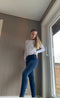 Så otroligt nöjd med den! Jag är mycket van vid att använda skinny jeans, så jag var verkligen nyfiken på hur jag skulle gilla den här. Jag blev verkligen positivt överraskad. Storleken passade perfekt, jag använder storlek xs och den satt som en smäck och såg otroligt fin ut. Det är en ny favorit i min garderob! ❤️