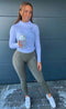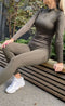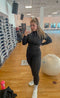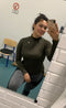 Den här är dödssnygg! Genomgående ribbade detaljer. Tight och smickrande. Visar inga svettmärken på tyget. Materialet är väldigt elastiskt. Jag älskar att den är lång i kroppen och ärmarna. Jag har min i storlek small och den passar mig perfekt på alla områden förutom från nacken ut till axlarna. Axeldelen är smal. Men jag är ganska bred över ryggen, och det påverkar passformen där. Denna kommer nog mest att användas till vardags på grund av passformen runt axlarna, eventuellt på dagar jag tränar ben. Men herregud vilket skönt vardagsplagg! 🙌🏾