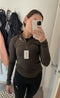 Dessa långärmade är bara helt fantastiska! Precis rätt tjocklek, de är mjuka, stretchiga, fina, bra och perfekta för att träna med eller ha på innan eller efter träning. Jag har dem i flera färger, och jag önskar fler😍. Jag har Olive i storlek XS och White i storlek S. Båda fungerar fint, och det är inte så stor skillnad. Den vita blir lite lösare, men sitter fortfarande bra. Jag använder både XS och S i andra toppar också.