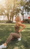 Den här toppen är min nya favorit, och ryggen är så fin. Tyget är supermjukt. Jag har min i S, men skulle kunna ha använt XS i denna. Jag skulle säga att den är normal till lite stor i storlek.