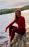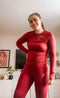 Bekväm och lätt långärmad jag har letat efter för att ge mig själv en känsla av mjuk komfort efter en utmattande träning. Djup körsbärsröd ger en boost till humöret. Även bra för resor :) Tack!