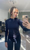 Den var otroligt skön att ha på sig :). Passar bra i storlek, bra tyg och den sitter inte som korvskinn på kroppen ☺️.