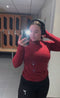 Älskar denna röda färg❤️❤️ Superfin och bekväm topp för vandring och träning! Jag har storlek L för att den inte ska sitta så tajt. Använder vanligtvis S, så jag skulle nog kunna ha storlek M. Med andra ord passar den de flesta storlekar, men det beror på hur tajt du vill ha den🙌🏼