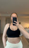Jag har denna i storlek S och M. Jag tycker att S passar perfekt för träning eftersom den sitter lite bättre, medan M är en perfekt chill BH. Jag har den i vit och inläggen syns lite igenom men det är inte så illa. Jag älskar att den har tunna remmar, den är också väldigt bekväm. Jag använder 75C förresten för jämförelse.