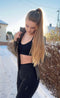 denna topp är helt perfekt för vardag och yoga. Jag har den i storlek M, skulle nog kunna ha den i S också. bra flexibilitet i tyget, om du har en stor bröst/byst men smal runtom skulle jag rekommendera S istället för M.
